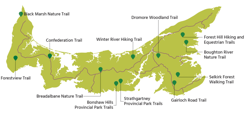 Much like in Newfoundland, the Trans Canada Trail in Prince Edward Island extends the full length of the region’s land mass with well developed pathways for biking and walking.